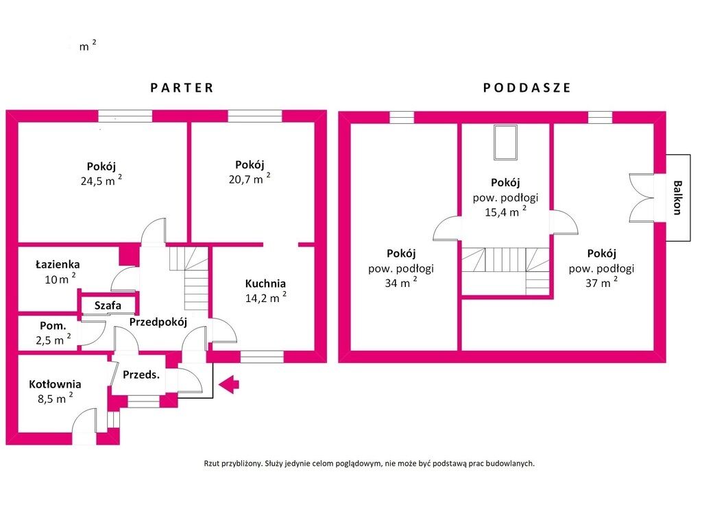 Parter: dwa przestronne pokoje, kuchnia, łazienka, kotłownia,